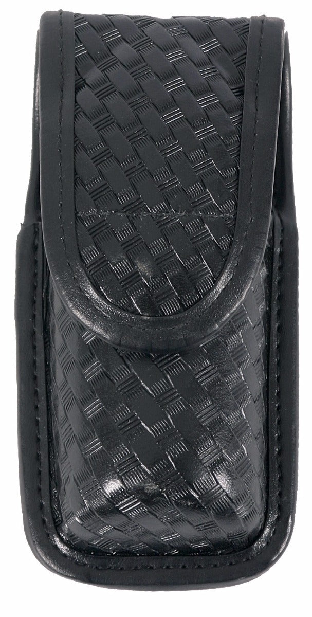 This small pepper spray holder is made from high quality synthetic leather which ensures high durability as well as a professional appearance. It comes in a black basket weave design.