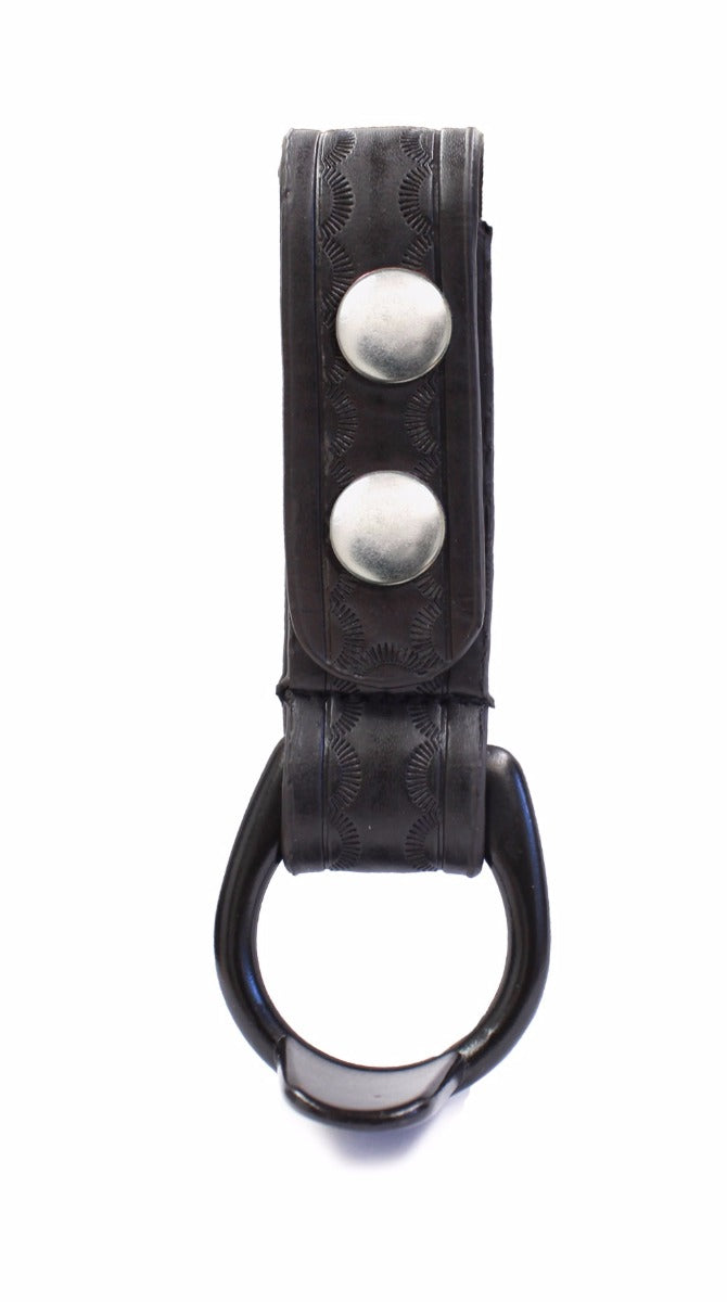 This ring baton holder is made from high quality synthetic leather, providing a professional appearance as well as high durability. The holder comes in a black finish with either nickel, brass, or black fittings.