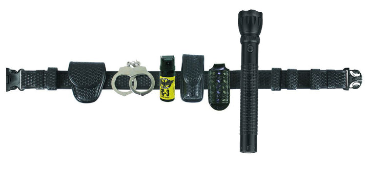 Made from synthetic leather, the basket weave Duty Belt Combo is an essential starter kit for any officer. The kit includes the belt, large flashlight with holder, set of 4 keepers, stainless steel handcuffs with holder, and FC03 pepper spray with holder.