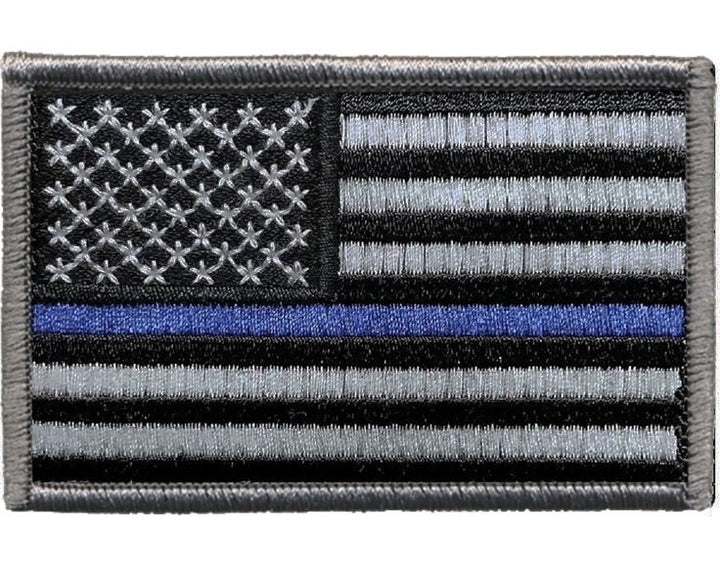 The U.S. flag patch is a 100% high quality embroidery morale patch that comes in 3 ⅜" x 2". The U.S. flag comes in grey and black with a thin blue line going across the patch.