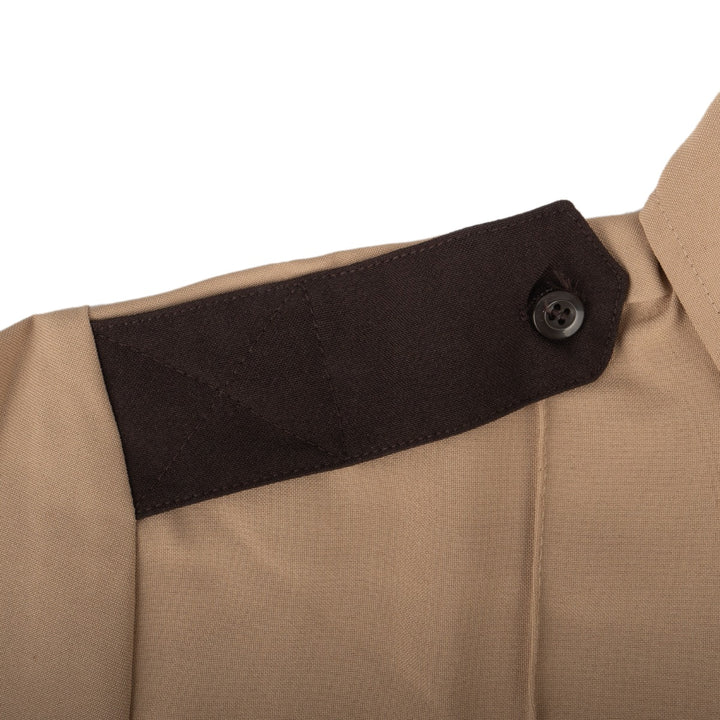 For an extra touch of professionalism, our shirt boasts 5-point military creases and button-down "X" stitched epaulets. These details not only exude a sense of uniformity but also project an air of authority and attention to detail. -