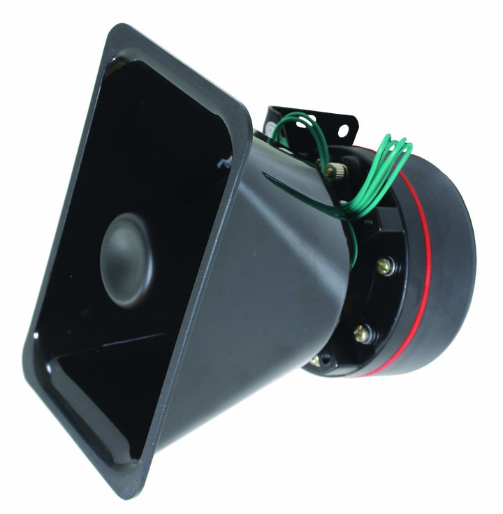 The Black Vehicle Speaker features a black ABS plastic cone and metal housing and is available in 80 and 100 watts. The speaker has an L-style bracket attached and its dimensions are 6 ½”D 8”W 5 ½”H. It comes with a 12 foot power cord.