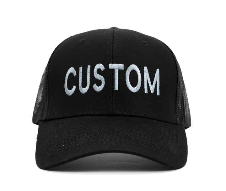 These caps have an adjustable head band with a snap on the back, allowing them to comfortably fit on your head. Its buckram front construction ensures the cap remains durable for long use, and the mesh back keeps you feeling cool on hot days. The caps can come in black and navy blue with custom text.