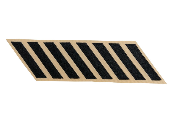 The Department of Traffic Service Stripe Hashmarks are patches that display the number of years of service completed by the wearer. Each hashmark represents a completed period of three years. The hashmarks are done in black with a tan background. Each sold separately.