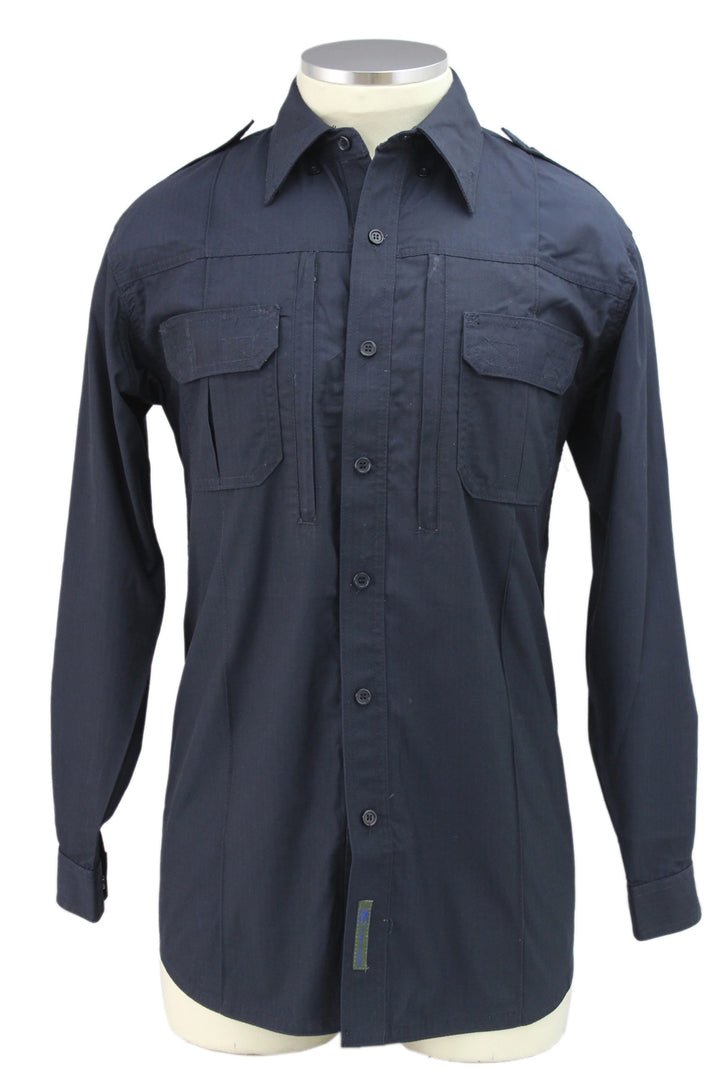 The First Class Lightweight Tactical Shirt is made from 65% polyester and 35% cotton, providing high durability and great comfort. The shirt is also lightweight and fade, shrink, and wrinkle resistant. It has several pockets including two box-pleated chest pockets with hook and loop closure and two zippered chest pockets. The shirt is also featured with a removable metal badge eyelet, hidden zipper, and gusseted underarm to increase range of motion. It comes in navy blue, black, green, dark gray, and khaki.