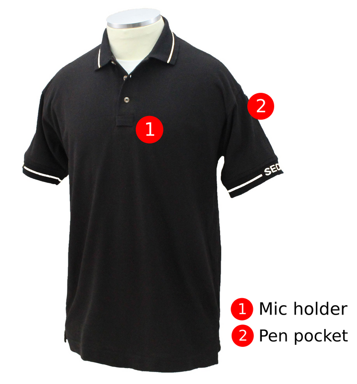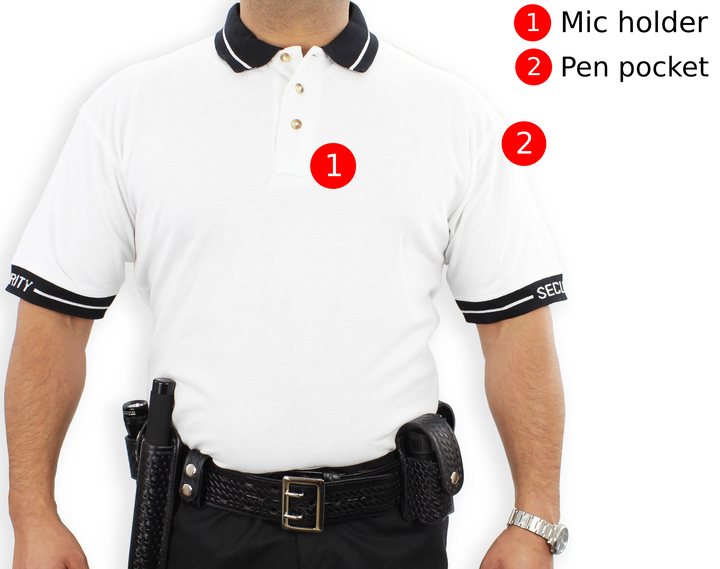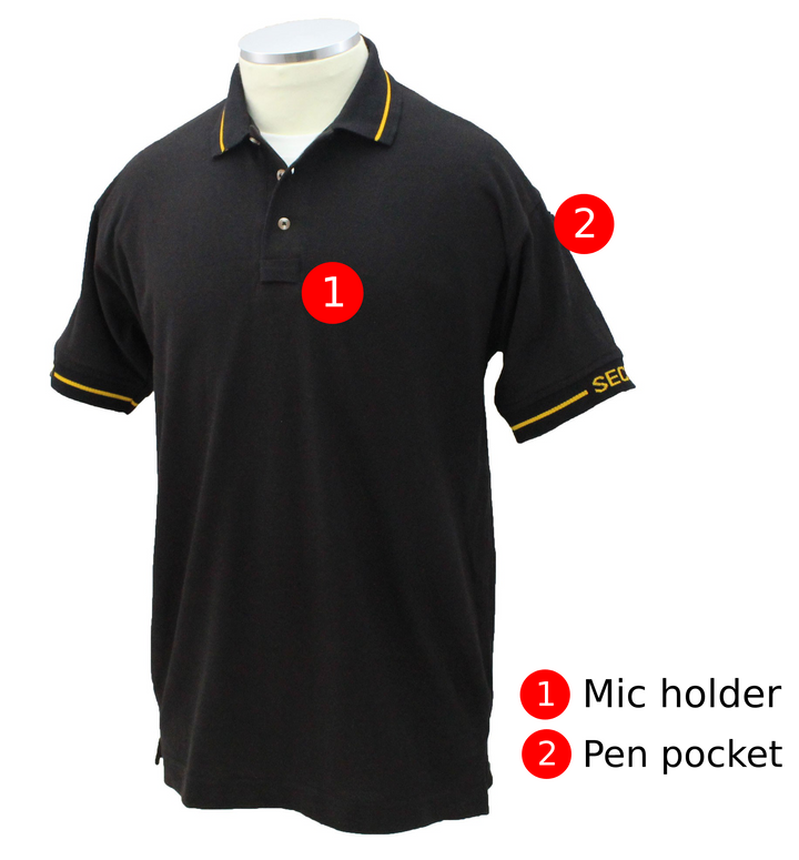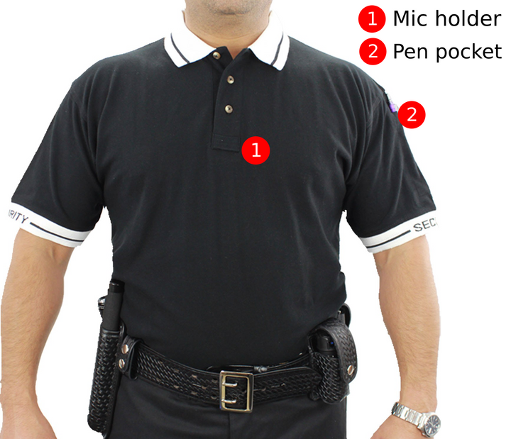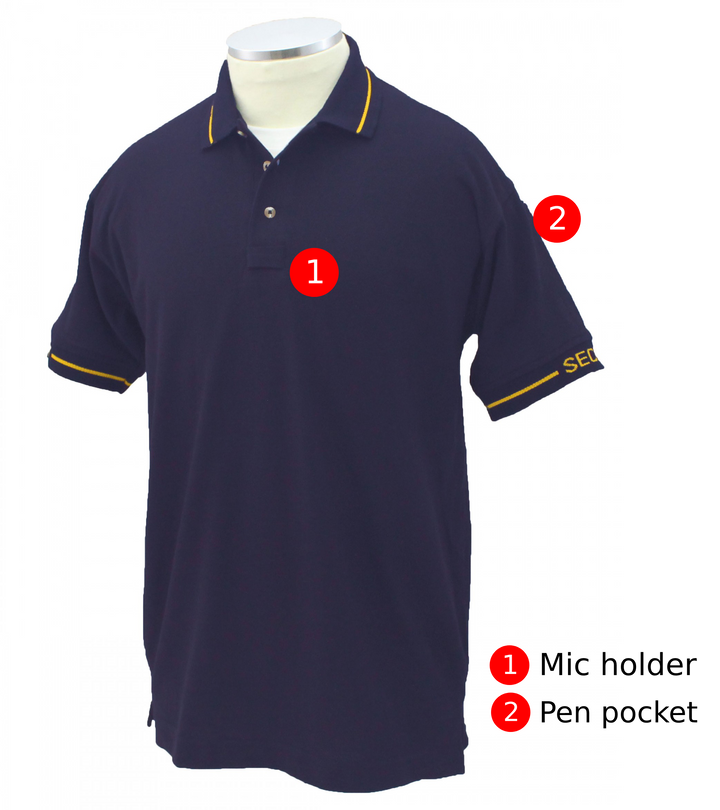 - Security lettering woven on collar and sleeves