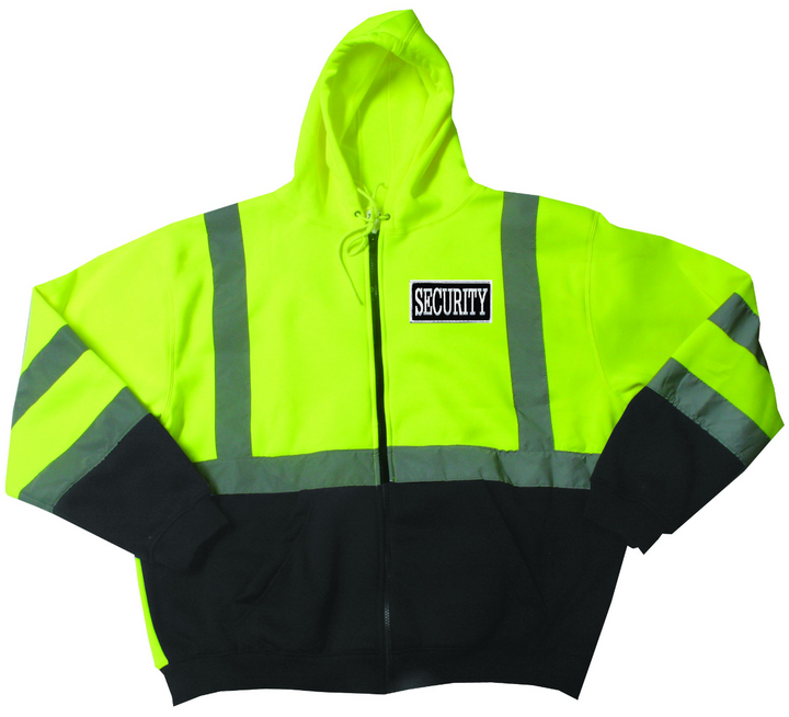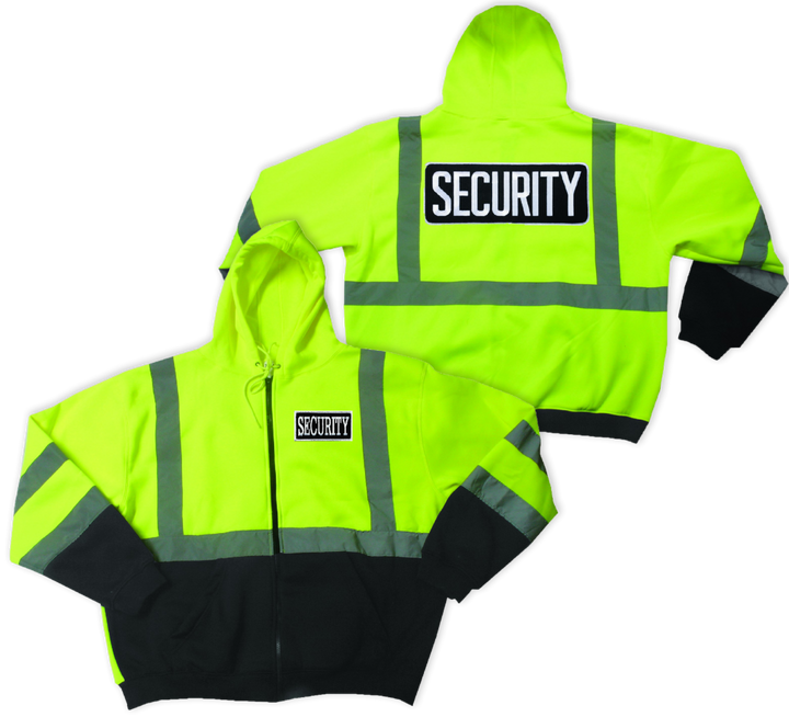 The Hi-Visibility Safety Thermal Zippered Hoodie is made from 100% spun polyester microfiber fleece and reflective material with silver fabric reflective stripes, ensuring protection while also providing high visibility. It comes with a Security ID emblem on the front and back.