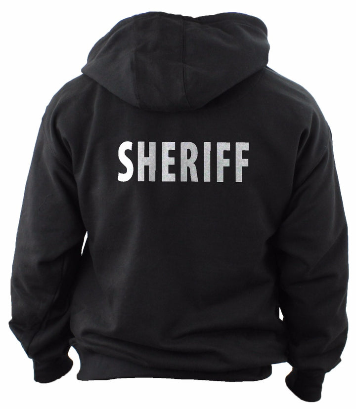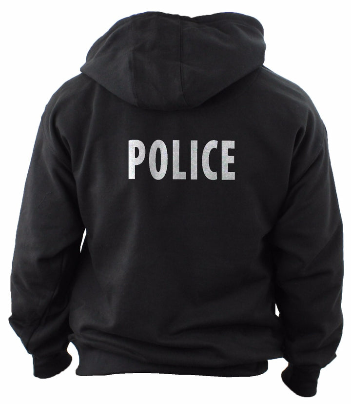 The Hoodie Sweater With ID is made from 80% cotton and 20% polyester, giving it the perfect blend of high durability and comfort. The sweater is lined with 100% polyester fleece and comes with two side pockets. It comes in black with Police, Security, Sheriff, or Staff printed on the sweater in gold or white letters on the front and back.