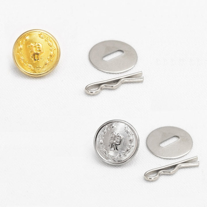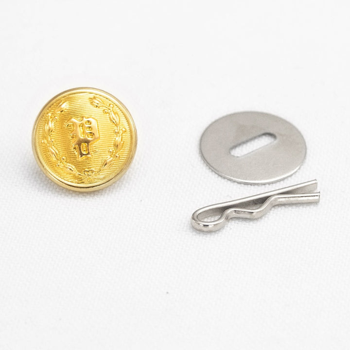 The LAPD P Buttons are Police P buttons intended for use with uniform jackets, which are not included. These buttons come in gold and silver, and they come with attachment pieces. They are sold individually.