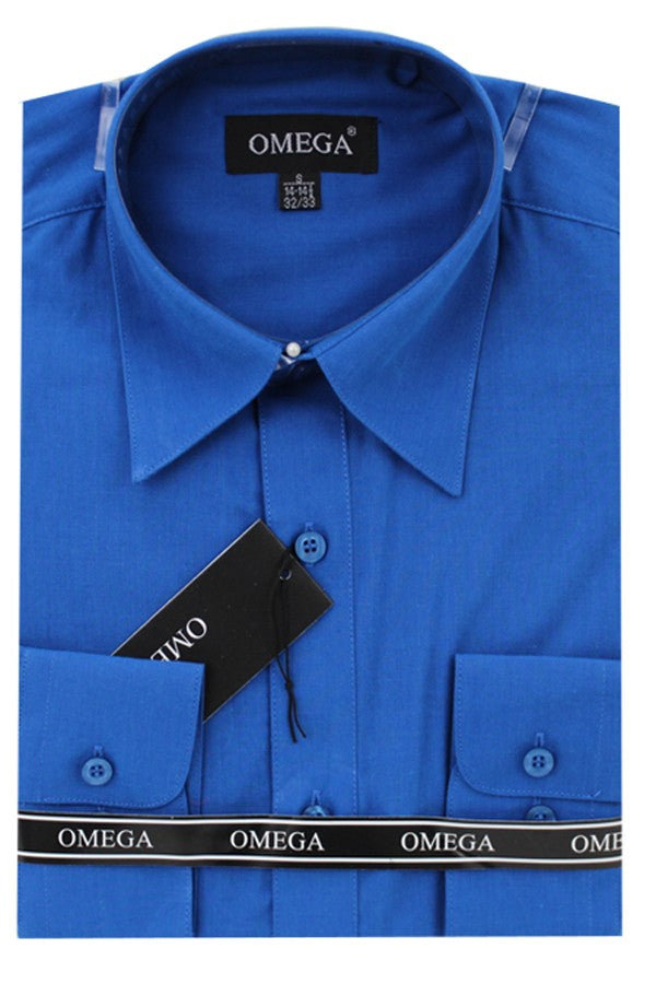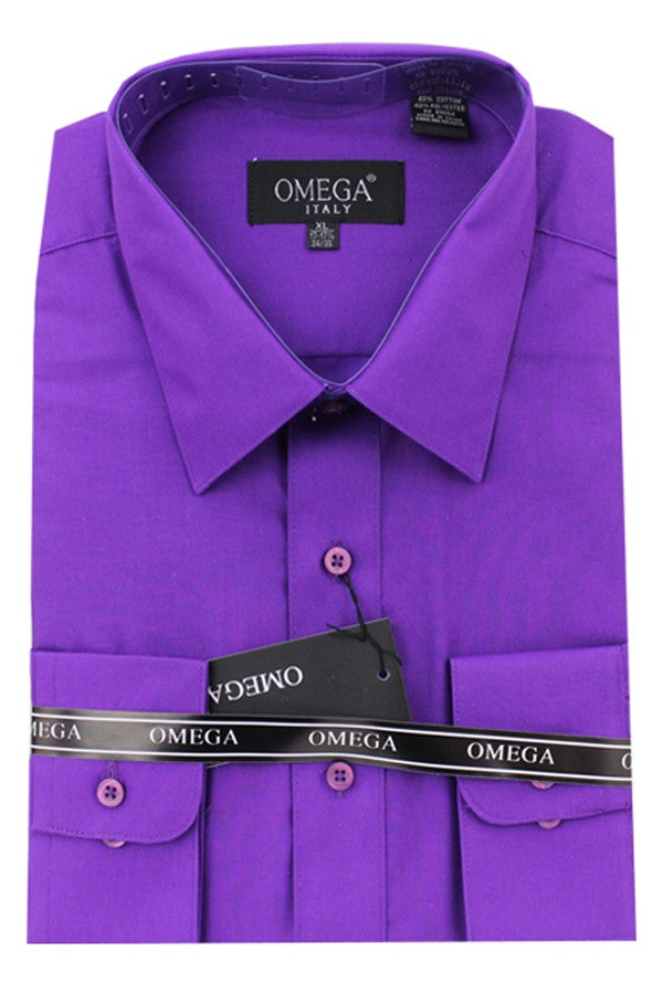 The Dress Shirts are made from 60% polyester and 40% cotton, providing a blend for durability and comfort. The dress shirts have an open left chest pocket, are long sleeve, and come in a variety of colors, such as hot pink, orange, navy blue, light blue, purple, turquoise, light grey, off white, green, dark grey, white, red, lilac, burgundy, pink, black, royal blue, and gold.