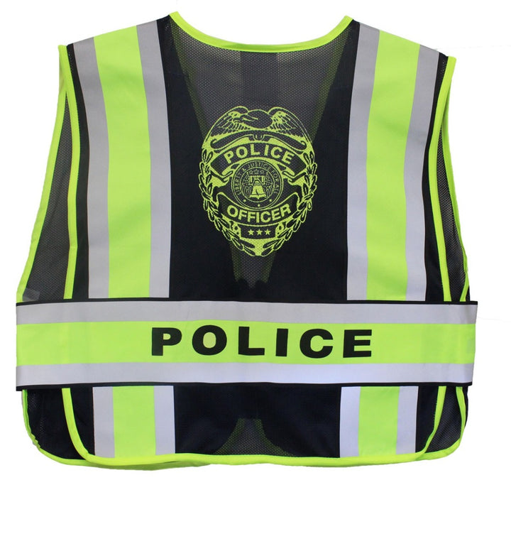 The Reflective Duty Vests have a durable mesh construction to provide high durability for extensive use. Its fluorescent trim and reflective stripes ensure high visibility in all conditions. It comes in navy blue with Police printed on the back and front in black letters.