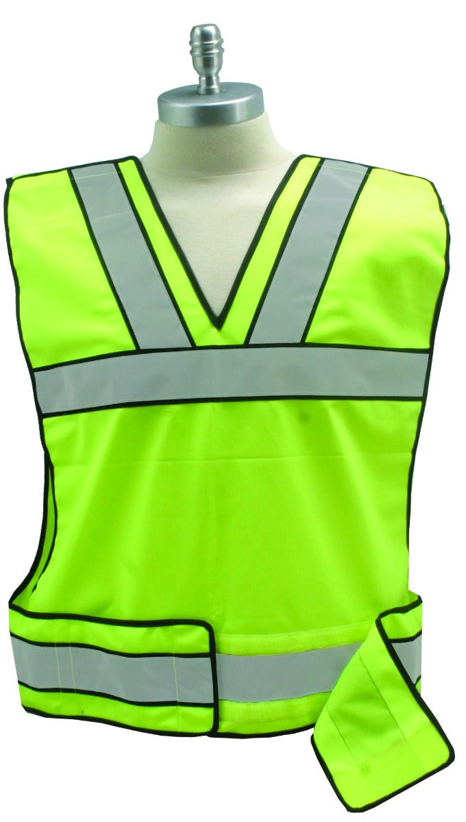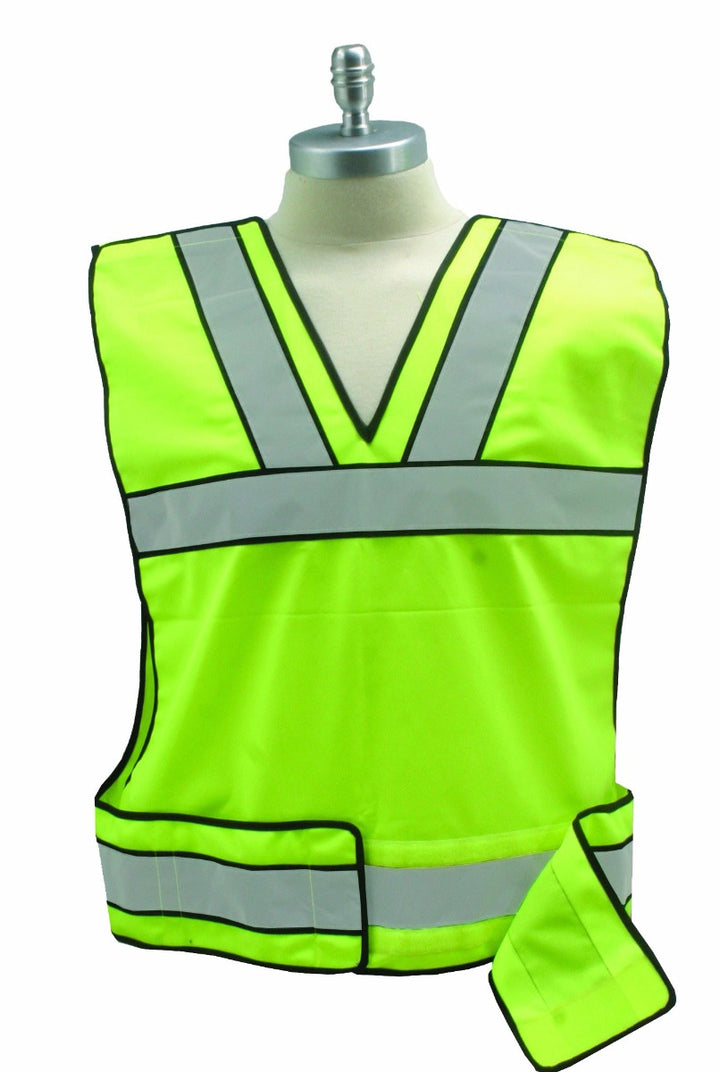 The Reflective Safety Vest ensures high visibility due to its lime color and reflective silver stripes. It is easily adjustable to fit with its Velcro straps, which are made from 100% polyester.