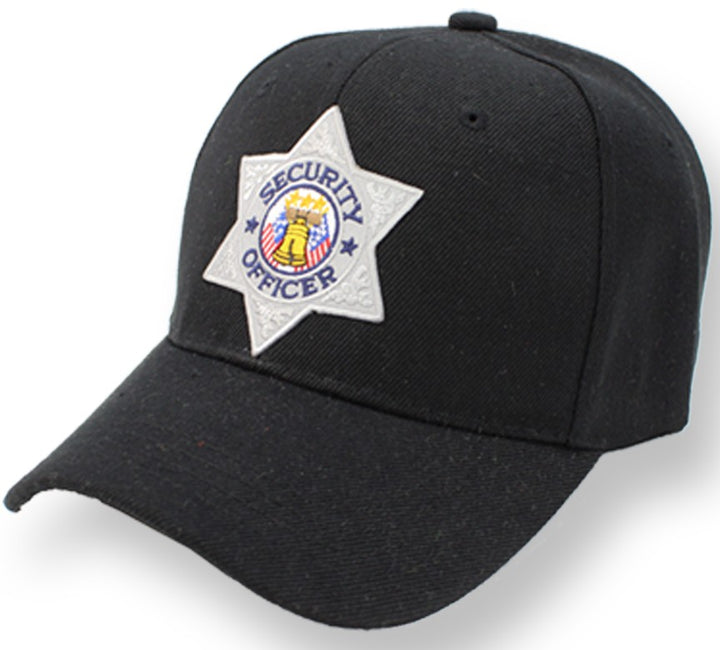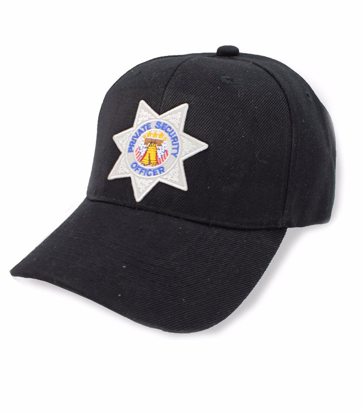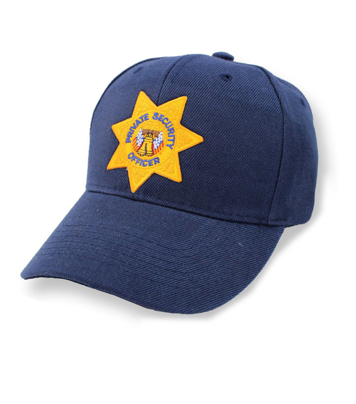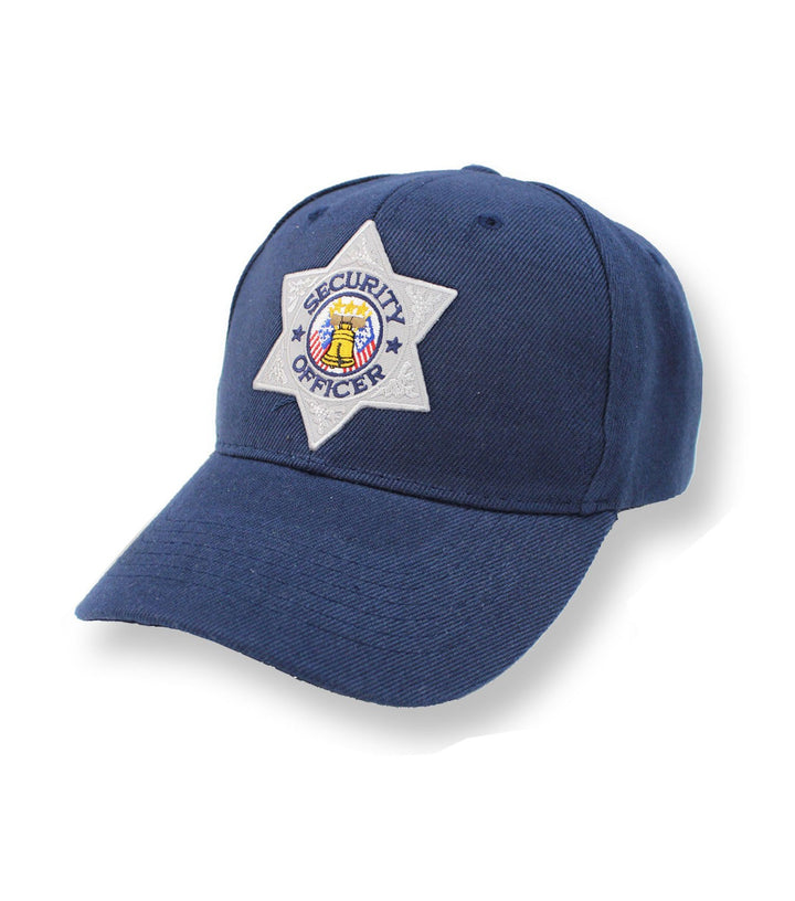 The Security Emblem Cap has an adjustable head band with a Velcro adjustment on the back, allowing it to comfortably fit on your head. The cap comes in black and navy blue and can read "Security Officer" or "Private Security Officer" in an embroidered gold or white emblem.