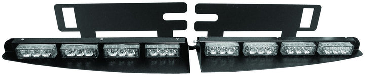 The Visor Style GEN 3.5 LED Lightbar features a sleek black housing for a camouflage effect and clear lenses for a stealth appearance. The available colors include red, red/blue, green, blue, amber/green, and amber. There are 15 selectable flash patterns and visor style brackets. The lightbar comes with an on/off switch and momentary button and a 9 foot power cord. The dimensions of the lightbar are 1 ¾” H x 5” D x 19” L.