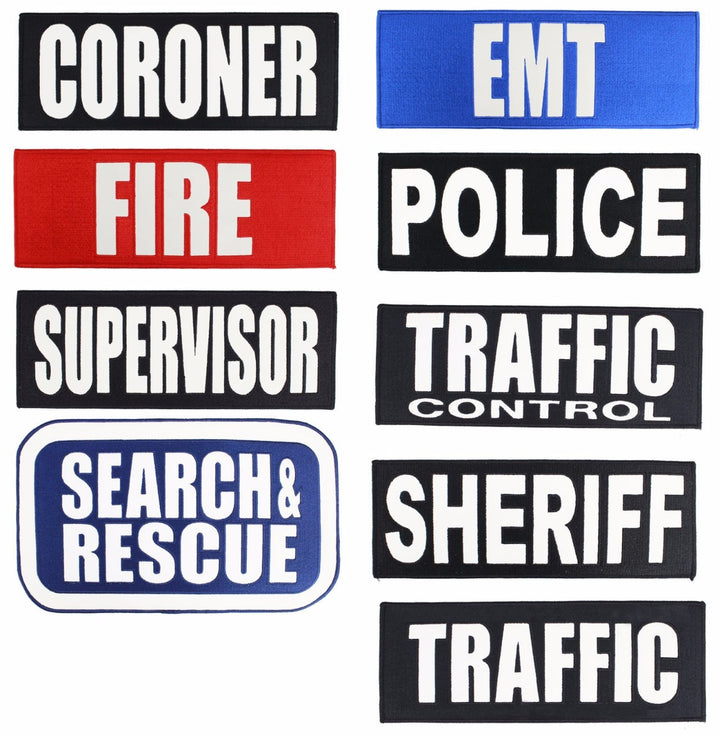 - Size: 10 ⅞" x 4" for Coroner, EMT, Fire, Police, Supervisor, Traffic Control, Sheriff, and Traffic Emblems