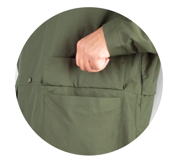 The Windproof / Water-Resistant Long Rain Jacket is built for dependable performance in challenging weather. Constructed from a durable nylon outer shell and lined with soft anti-pilling micro fleece, it provides warmth, comfort, and protection from wind and rain. Designed for professional use, it includes an adjustable hood, full snap-button front closure, and duty belt side access for convenience in the field.